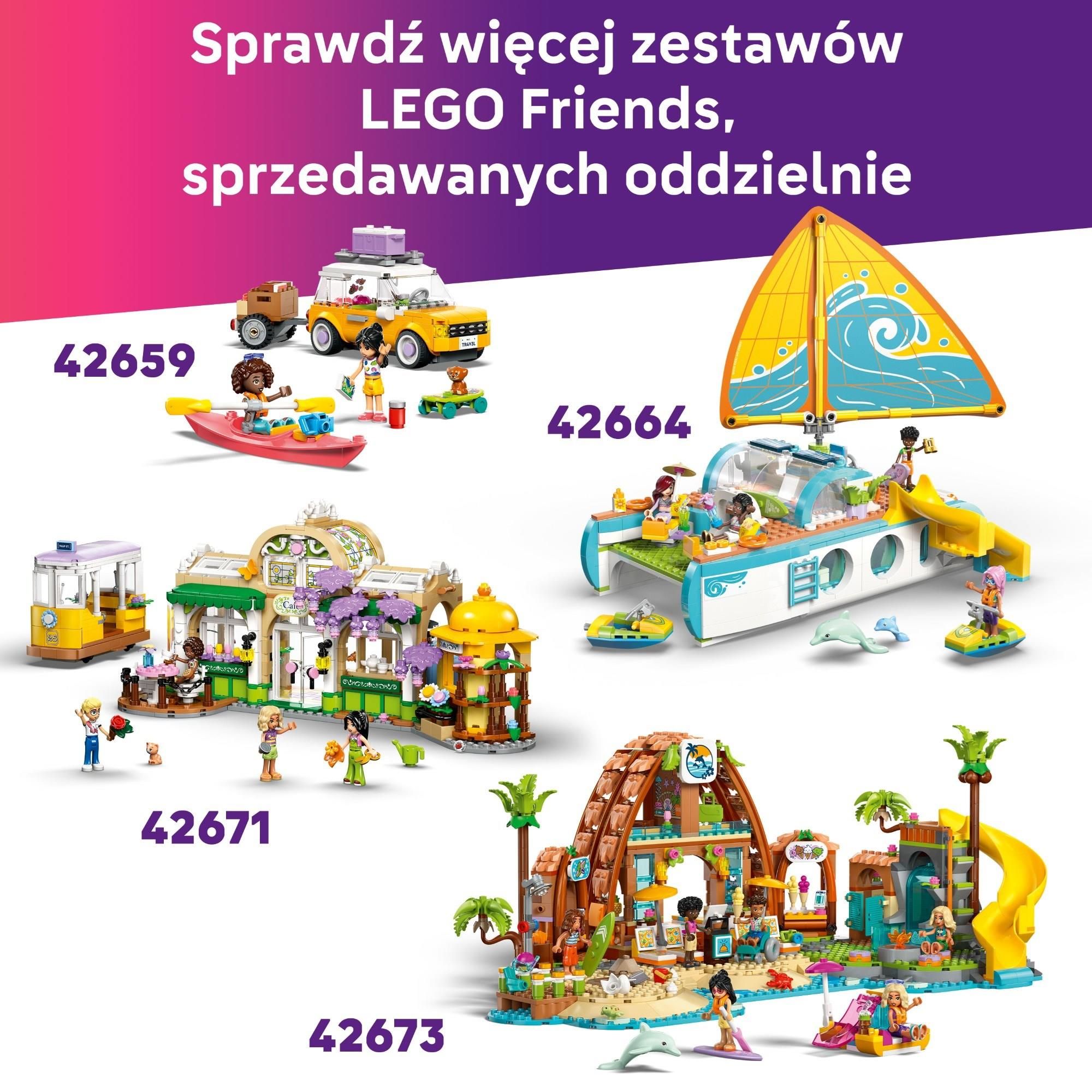 Jeszcze więcej zabawy z tą serią: Znajdź więcej kreatywnych pomysłów na zabawę innymi zestawami sprzedawanymi oddzielnie w serii online LEGO Friends: Następny rozdział, w której dzieci spotykają przyjaciół z Heartlake City